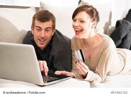 Junges Paar Sofa Laptop Notebook, Kreditkarte